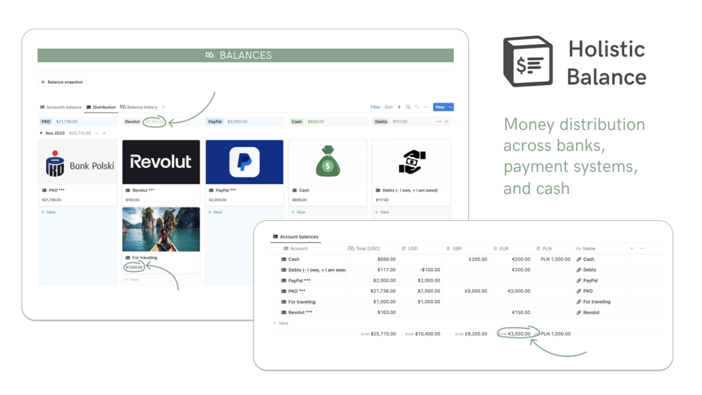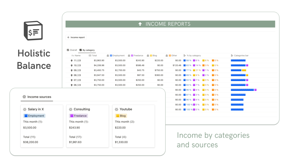 Well, guess what? There's a game-changer in town – the Holistic Balance template for Notion. It's designed to wipe away the financial tracking headaches and make your life a whole lot simpler. No more drowning in details, no more stale systems. Just clarity, simplicity, and control.